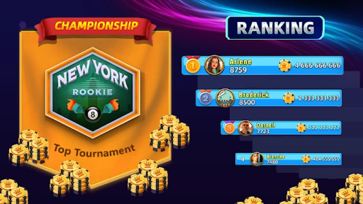 প্রতিযোগিতামূলক ৮-বল পুলের রোমাঞ্চকর জগতে প্রবেশ করুন। আপনি শক্তিশালী বটদের বিরুদ্ধে অফলাইন খেলার নিস্তব্ধতা পছন্দ করুন বা বিশ্বজুড়ে প্রকৃত খেলোয়াড়দের চ্যালেঞ্জ করার রিয়েল-টাইম উত্তেজনা, এই গেমটি উভয়ই সরবরাহ করে। গতিশীল ৮-বল পুল টুর্নামেন্টে অংশ নিন, আপনার দক্ষতা প্রমাণ করুন এবং লিডারবোর্ডে দ্রুত আরোহণ করে একজন সত্যিকারের পুল মাস্টার হিসাবে আপনার খ্যাতি প্রতিষ্ঠা করুন। বিভিন্ন চ্যালেঞ্জের মধ্যে নির্বিঘ্ন পরিবর্তন অবিরাম বিনোদন নিশ্চিত করে।
