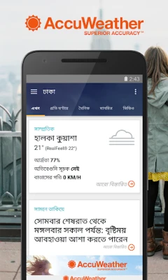 AccuWeather আপনার প্রতিটি দিনকে নিখুঁতভাবে পরিকল্পনা করতে, ব্যবসায়িক সিদ্ধান্তগুলোকে সুরক্ষিত রাখতে এবং প্রতিটি মুহূর্তের সদ্ব্যবহার করতে আপনাকে সাহায্য করে। বিশ্বজুড়ে দেড় বিলিয়নেরও বেশি মানুষ AccuWeather-এর অতুলনীয় নির্ভুলতার ওপর আস্থা রাখে। ১০০টিরও বেশি ভাষা ও উপভাষায় বিশ্বের প্রতিটি প্রান্তের জন্য সুনির্দিষ্ট পূর্বাভাস নিয়ে AccuWeather দাঁড়িয়ে আছে আবহাওয়ার তথ্যের এক বিশ্বস্ত উৎস হিসেবে, যা অন্য যেকোনো সরকারি বা বেসরকারি সংস্থার চেয়ে বিস্তৃত।
