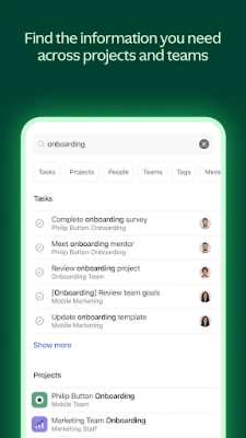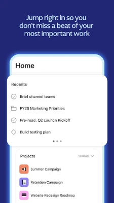 আসানার (Asana) ওয়েব অ্যাপে আরও অনেক উন্নত ফিচার আপনার জন্য অপেক্ষা করছে। পোর্টফোলিও (Portfolios) ব্যবহার করে আপনার সমস্ত প্রকল্পের সম্মিলিত অগ্রগতি পর্যবেক্ষণ করুন, কাস্টম ফিল্ড (Custom Fields) এর মাধ্যমে কাজের গুরুত্বপূর্ণ বিবরণ যোগ করুন এবং টাইমলাইন (Timeline) ভিউতে গ্যান্ট চার্ট সহ কাজের নির্ভরশীলতাগুলো দেখুন। প্রতিষ্ঠানের সামগ্রিক লক্ষ্য ও মাইলস্টোনগুলি ট্র্যাক করতে গোলস (Goals) ফিচারটি ব্যবহার করুন। আসানা (Asana)-এর অনন্য ওয়ার্ক গ্রাফ™️ (Work Graph™️) আপনার প্রতিষ্ঠানের প্রতিটি কাজ, প্রকল্প এবং লক্ষ্যকে একসূত্রে গেঁথে দেয়, যা প্রতিটি দল ও বিভাগের মধ্যে সম্পূর্ণ স্বচ্ছতা, সমন্বয় এবং অখণ্ডতা নিশ্চিত করে। বিশ্বজুড়ে লক্ষ লক্ষ ব্যবহারকারী এবং ১০০,০০০-এরও বেশি প্রতিষ্ঠান তাদের কর্মপ্রবাহকে সুসংহত ও কার্যকরভাবে পরিচালনা করতে আসানা (Asana)-এর ওপর সম্পূর্ণ নির্ভর করে।