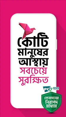 আপনার bKash অ্যাকাউন্টের নিরাপত্তা আমাদের সর্বোচ্চ অগ্রাধিকার। প্রথম লগ-ইন-এর সময় আপনার bKash অ্যাকাউন্ট যাচাই করতে আমরা একটি OTP পাঠাই, এবং লগ-ইন ও প্রতিটি লেনদেনের সময় আপনার পিন কোড চাওয়া হয়। আপনার মোবাইল ওয়ালেটের উপর সম্পূর্ণ নিয়ন্ত্রণ নিশ্চিত করতে বিস্তারিত লেনদেনের ইতিহাস ও মাসিক সারাংশ "স্টেটমেন্ট" থেকে দেখে নিন। আপনার বর্তমান লেনদেন সীমা সম্পর্কে রিয়েল-টাইম তথ্য পেতে "চেক লিমিট" ব্যবহার করুন। মাত্র একটি ট্যাপে আপনার ব্যালেন্স চেক করুন, এবং নিরাপত্তার জন্য কয়েক সেকেন্ড পর স্বয়ংক্রিয়ভাবে তা লুকিয়ে যাওয়ার সুবিধা উপভোগ করুন। লেনদেন সম্পন্ন করার পূর্বে, আপনার বর্তমান ব্যালেন্স, স্বয়ংক্রিয়ভাবে গণনা করা সার্ভিস চার্জ এবং লেনদেন পরবর্তী সম্ভাব্য ব্যালেন্স – সবকিছু এক নজরে দেখে bKash App-এ আপনার লেনদেনের উপর পূর্ণ স্বচ্ছতা ও নিয়ন্ত্রণ রাখুন। অ্যাপটি বাংলা ও ইংরেজি উভয় ভাষায় ব্যবহারযোগ্য, যা আপনি প্রয়োজন অনুযায়ী যেকোনো সময় পরিবর্তন করতে পারবেন।