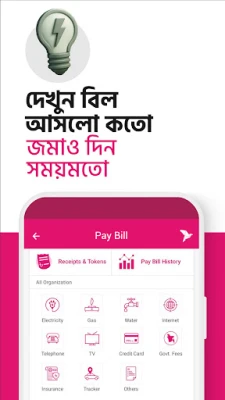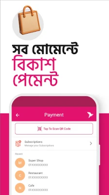 আপনার দৈনন্দিন লেনদেনকে সহজ ও সুরক্ষিত করতে bKash App আপনার বিশ্বস্ত সঙ্গী। bKash অ্যাকাউন্ট না থাকলেও এখন আপনি bKash App-এর বিস্তৃত পরিসেবা ও আকর্ষণীয় সুবিধাগুলো অন্বেষণ করতে পারবেন। অন্বেষণ শেষে, আপনার জাতীয় পরিচয়পত্র ব্যবহার করে মাত্র কয়েক মিনিটের মধ্যেই অ্যাপের মাধ্যমে একটি নতুন bKash অ্যাকাউন্ট নিবন্ধন করা সম্ভব। অ্যাকাউন্ট খোলার পর, আপনার ব্যাংক অ্যাকাউন্ট বা কার্ড থেকে খুব সহজেই "অ্যাড মানি" ফিচারের মাধ্যমে মুহূর্তেই যেকোনো bKash অ্যাকাউন্টে টাকা যোগ করুন। দ্রুত ও নির্ভুল লেনদেনের জন্য হোম স্ক্রিনের "স্ক্যান কিউআর" ব্যবহার করে দোকানে পেমেন্ট করুন, এজেন্ট পয়েন্ট থেকে ক্যাশ আউট করুন অথবা অন্য bKash ব্যবহারকারীদের সাথে টাকা পাঠান। এছাড়াও, আপনার বিদ্যুৎ, গ্যাস ও ইন্টারনেটসহ সব ধরনের মাসিক ইউটিলিটি বিল পরিশোধ করুন ঘরে বসেই, সম্পূর্ণ ঝামেলামুক্তভাবে।