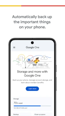 Google One অ্যাপ আপনার ফোনের ডেটা স্বয়ংক্রিয়ভাবে ব্যাক-আপ করে এবং Google ক্লাউড স্টোরেজ সহজে ম্যানেজ করতে সাহায্য করে। আপনার সব গুরুত্বপূর্ণ ফাইল সুরক্ষিত রাখুন।