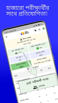 চাকরির বাজারে নিজেকে এক ধাপ এগিয়ে রাখতে চান? Live MCQ™ আপনার সেই স্বপ্ন পূরণের সারথি। সরকারি বা বেসরকারি, যেকোনো প্রতিযোগিতামূলক পরীক্ষার কঠিন পথকে সহজ করতে Live MCQ™ নিয়ে এসেছে এক অভূতপূর্ব সমাধান। হাজার হাজার পরীক্ষার্থীর সঙ্গে একই প্ল্যাটফর্মে রিয়েল-টাইম অনুশীলনের মাধ্যমে আপনি অনুভব করতে পারবেন আসল পরীক্ষার চাপ ও পরিবেশ, যা আপনার আত্মবিশ্বাসকে দৃঢ় করবে। ঘরে বসেই প্রস্তুতি নেওয়ার এই সুযোগ আপনার সময়, শ্রম ও অর্থ সাশ্রয় করে প্রস্তুতিকে করে তুলবে আরও গোছানো এবং ফলপ্রসূ।