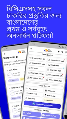 Live MCQ™ আপনাকে বিসিএস, ব্যাংক, প্রাইমারি, এনটিআরসিএ, নবম থেকে বিশতম গ্রেডের চাকরি, বার কাউন্সিল ও বিজেএস-এর মতো অসংখ্য পরীক্ষার প্রস্তুতি নিতে সাহায্য করে। আমাদের 'পরীক্ষা' সেকশনে প্রতিদিনের লাইভ মডেল টেস্ট এবং বিস্তারিত ব্যাখ্যাসহ ফলাফল বিশ্লেষণ আপনার দুর্বলতা চিহ্নিত করতে সহায়ক। 'স্টাডি' সেকশনে পাবেন অভিজ্ঞ শিক্ষকদের পরিচালনায় লাইভ ও রেকর্ডেড ভিডিও ক্লাস, পিডিএফ ও অডিও স্টাডি ম্যাটেরিয়াল এবং স্টাডি গ্রুপে সমমনাদের সাথে অনুশীলনের সুযোগ। আরও রয়েছে মাল্টি-প্লেয়ার কুইজ গেম ও আকর্ষণীয় পুরস্কার জেতার হাতছানি। প্রিমিয়াম ব্যবহারকারীদের জন্য স্মার্ট সার্চ, ডাইনামিক ইনফো প্যানেল ও টপিক গুরু-এর মতো আধুনিক ফিচার আপনার প্রস্তুতিকে দেবে এক নতুন মাত্রা, যেখানে PSC, IBA, FBC সহ বিভিন্ন পরীক্ষার কর্তৃপক্ষের ধরন অনুযায়ী সলিউশন পাওয়া যাবে।