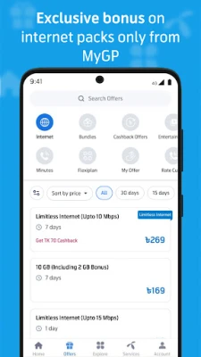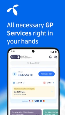 MyGP শুধু একটি অ্যাপ নয়, এটি আপনার দৈনন্দিন ডিজিটাল জীবনের এক নতুন দিগন্ত। এই প্ল্যাটফর্মের মাধ্যমে আপনার প্রিয় ইন্টারনেট প্যাকেজে MyGP থেকে উপভোগ করুন ৫০% পর্যন্ত অবিশ্বাস্য বোনাস ইন্টারনেট। এক ক্লিকেই জেনে নিন আপনার অ্যাকাউন্টের বিস্তারিত ব্যালেন্স, ইন্টারনেট, মিনিট এবং এসএমএস-এর পরিমাণ। আপনার সুবিধামতো ডেবিট/ক্রেডিট কার্ড, বিকাশ অথবা নগদ ওয়ালেট ব্যবহার করে সহজে রিচার্জ করুন এবং টেলিকম সেবা পরিচালনার অভিজ্ঞতাকে করুন আরও মসৃণ ও স্মার্ট।