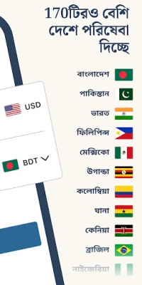 Remitly-এর সুবিশাল আন্তর্জাতিক নেটওয়ার্কের মাধ্যমে বিশ্বের ১৭০টিরও বেশি দেশে অনায়াসে অর্থ প্রেরণ করুন। বাংলাদেশ, ভারত, মেক্সিকো, পাকিস্তান, চীন, কেনিয়া, কলোম্বিয়া সহ অসংখ্য দেশে আপনার অর্থ পৌঁছে দিন। প্রাপকরা তাদের পছন্দের মাধ্যমে অর্থ গ্রহণ করতে পারবেন – যেমন bKash, Upay, MTN, Vodafone এর মতো মোবাইল মানি পরিষেবা অথবা Dutch Bangla Bank, Islami Bank Bangladesh, Sonali Bank, Citi Bank এর মতো আমাদের বিশ্বস্ত ব্যাংক নেটওয়ার্কের মাধ্যমে সরাসরি ব্যাংক ট্রান্সফার। আপনার সুবিধামত ব্যাংক অ্যাকাউন্ট, ক্রেডিট কার্ড বা ডেবিট কার্ড ব্যবহার করে সহজেই অর্থ পরিশোধ করুন।