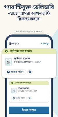 আপনার প্রিয়জনদের কাছে অর্থ প্রেরণের সবচেয়ে দ্রুত, সুরক্ষিত এবং সাশ্রয়ী উপায় খুঁজছেন? Remitly আপনার জন্য নিয়ে এসেছে এমন এক বিশ্বস্ত সমাধান, যেখানে ১০০টিরও বেশি মুদ্রায় দারুণ বিনিময় হার নিশ্চিত করা হয়। প্রেরককে কম ফি দিতে হয় এবং প্রাপককে কোনো অতিরিক্ত চার্জ বহন করতে হয় না, ফলে আপনার কষ্টার্জিত অর্থের বেশিটাই পৌঁছায় তাদের কাছে। Remitly প্রতিশ্রুতিবদ্ধ যে, আপনার অর্থ সঠিক সময়ে পৌঁছাবে—যা রিয়েল-টাইম আপডেটের মাধ্যমে আপনি নিজেই নিরীক্ষণ করতে পারবেন। যদি কোনো কারণে নির্ধারিত সময়সীমার মধ্যে অর্থ না পৌঁছায়, তবে আপনার পাঠানো ফি সম্পূর্ণ ফেরত দেওয়া হবে।