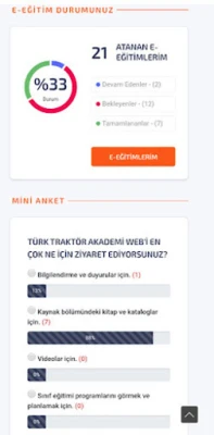 Türk Traktör Akademi একটি আধুনিক ও ব্যাপক মোবাইল প্রশিক্ষণ প্ল্যাটফর্ম যা কর্মীদের বিকাশে সহায়তা করে। এর মাধ্যমে Türk Traktör-এর ব্যবহারকারীরা বিভিন্ন শিক্ষার উৎসে সহজে প্রবেশ করতে পারে।